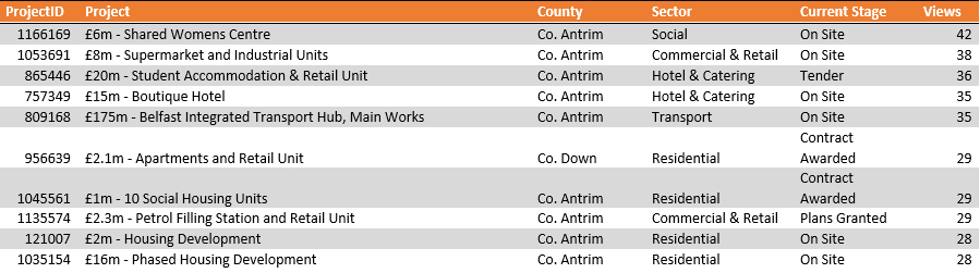 Top viewed projects in Northern Ireland